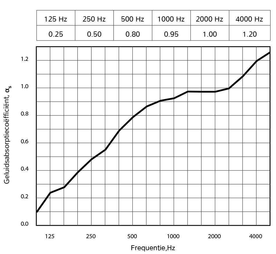Geluidsabsorptie-indicator αw = 0,80 volgens de norm PN-EN ISO 11654:1997