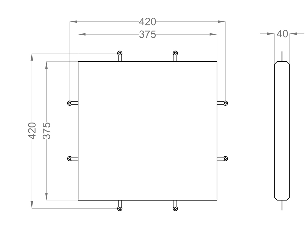 Paneel: 37,5 x 37,5 x 4 cm
